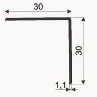 Aluminium L profil 30 x 30 mm. Rögzítése ragasztással lehetséges.